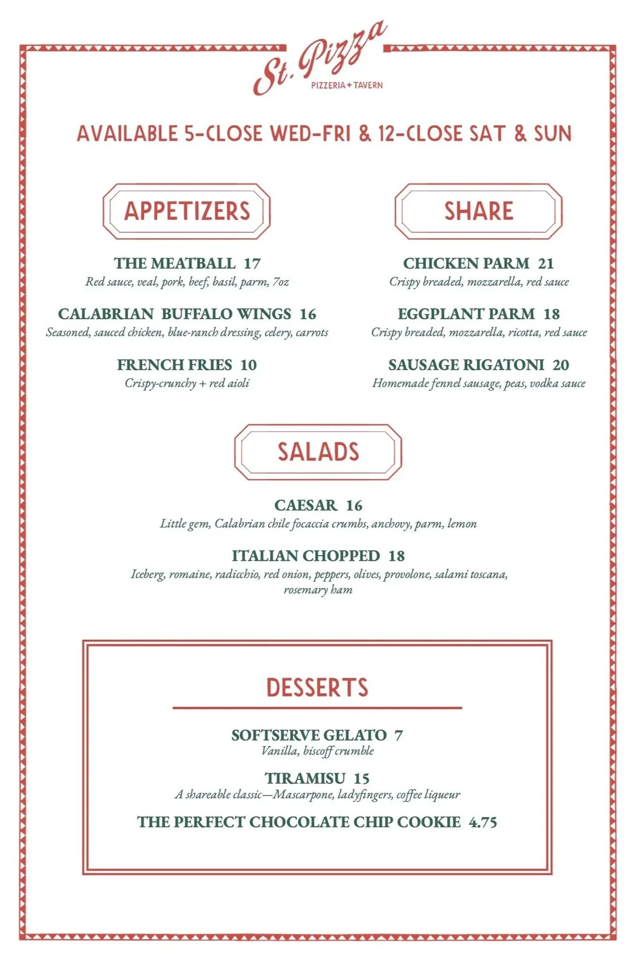 DO YOU CATER? Yes! We love catering orders. Send an email to info@st.pizza for a catering menu and all catering options.